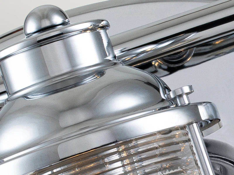 Langweilige Badbeleuchtung war gestern! Diese ausgefallene Innenleuchte im Industrial Style besticht durch ihr ausgefallenes Design und ihre hochwertige Verarbeitung. Der Korpus der Leuchte besteht aus chrom farbigem Stahl, der Lampenschirm aus strukturiertem Glas.