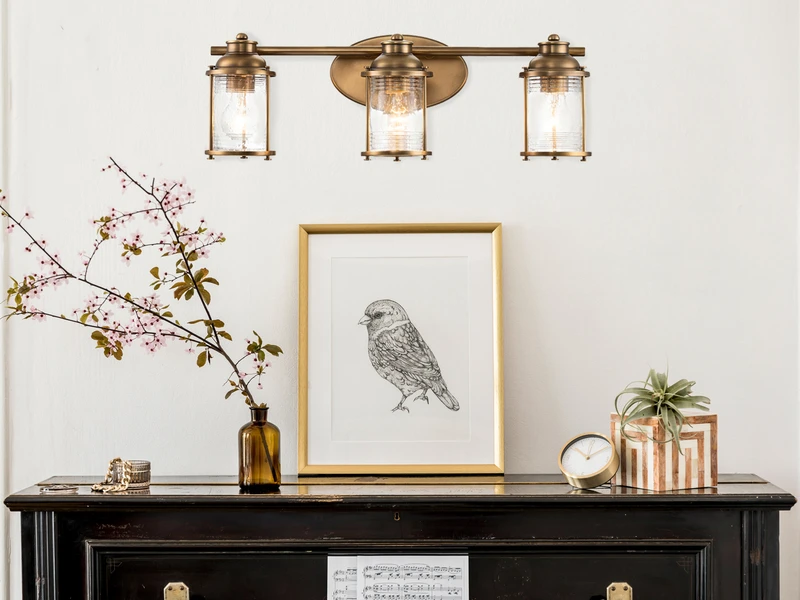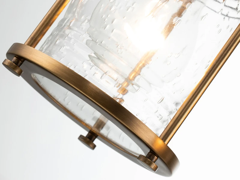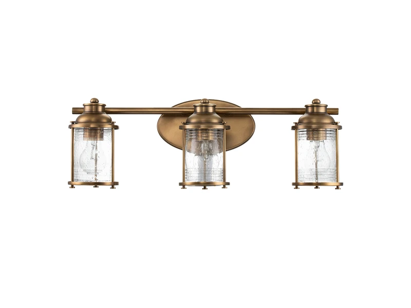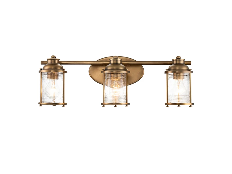 Langweilige Badbeleuchtung war gestern! Diese ausgefallene Innenleuchte im Industrial Style besticht durch ihr ausgefallenes Design und ihre hochwertige Verarbeitung. Der Korpus der Leuchte besteht aus messing farbigem Stahl, der Lampenschirm aus strukturiertem Glas.