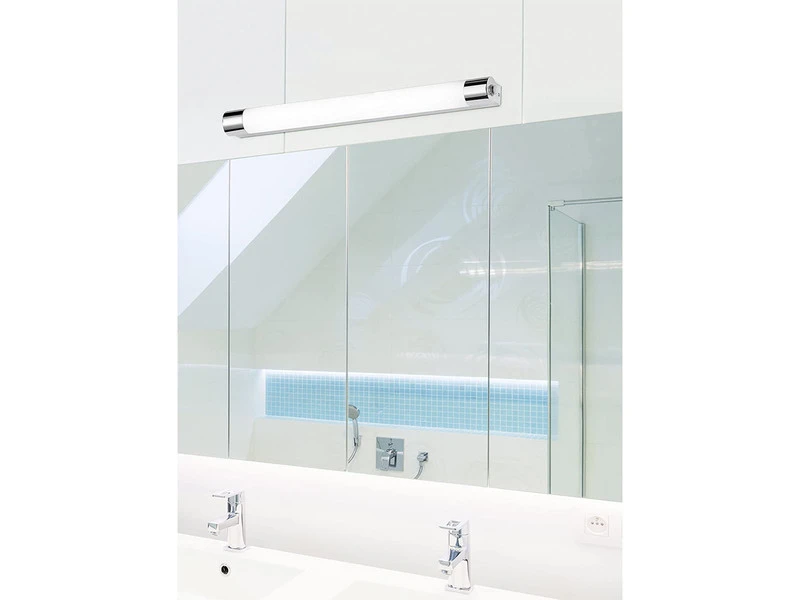 Das glänzende Chrom passt sich harmonisch in die Umgebung an und die matte Abdeckung schafft eine angenehme Lichtverteilung.