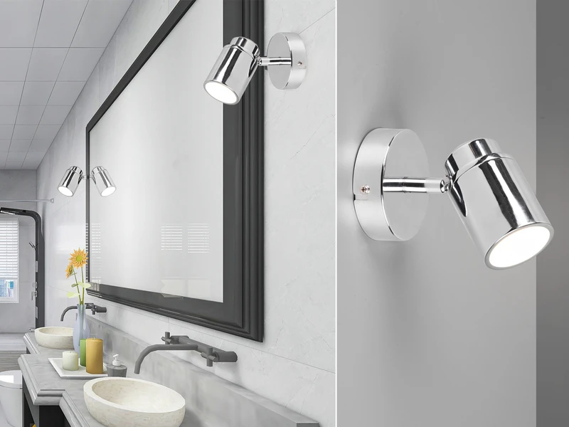 Mit den klassischen Spots der Serie ANGELO können Wohnräume oder Accessoires gekonnt in Szene gesetzt und gezielt beleuchtet werden. Durch die variabel verstellbaren Schirme und den Spritzwasserschutz IP44 ist die Wandleuchte vielseitig einsetzbar. Ob im Wäschekeller mit einem Spotlight auf die Waschmaschine oder im Badezimmer mit dem Fokus auf den Spiegel – die Spotleuchten sorgen überall für die ideale Ausleuchtung Ihres Wohnbereiches.