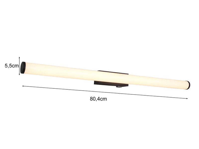 Durch das zeitlose Design und das dezente Farbkonzept in Schwarz matt harmoniert die Leuchte mit nahezu allen Einrichtungsstilen und fügt sich mit einer Breite von 80,4 cm und einer Ausladung von 8,8 cm gekonnt ins Wohnambiente ein.