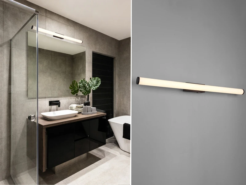 Auf der Suche nach einer geeigneten Badezimmerbeleuchtung kommt man auch an dieser praktischen, zeitlosen Bad Wandleuchte aus dem Hause Trio Leuchten nicht vorbei. Die minimalistische Wandleuchte MATTIMO gibt über die gesamte Breite ein sanftes Licht ab, welches sich gleichmäßig im Anwendungsbereich verteilt und eine ausreichende Lichtversorgung bietet. Das längliche Design findet sich optimal neben oder über dem Spiegel im Waschbereich wieder und sorgt für stilsichere Akzente.
