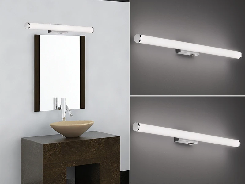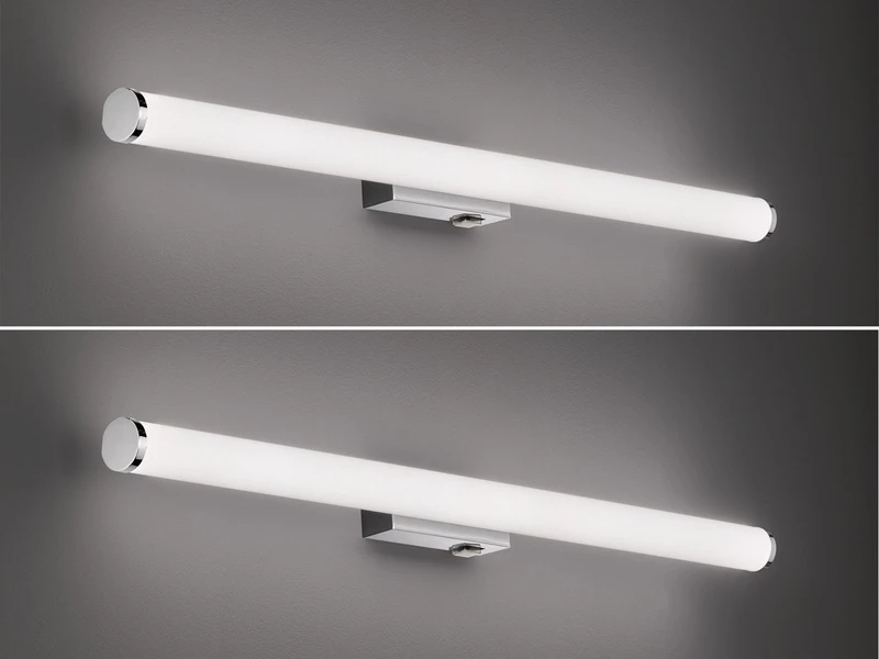 Jede Wandlampe ist mit einem fest verbauten LED Modul ausgestattet, welches mit einer Leistung von 8,6 Watt und 880 Lumen in Warmweiß für eine schöne Beleuchtung sorgt. Zusätzlich ist die Badezimmerlampe mit einem Ein / Aus Schalter ausgestattet.