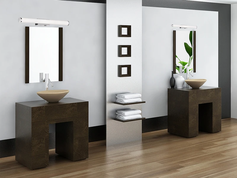 Auf der Suche nach einer geeigneten Badezimmerbeleuchtung kommt man auch an diesem praktischen, zeitlosen 2er Set Bad Wandleuchte nicht vorbei. Die minimalistische Wandleuchte gibt über die gesamte Breite ein sanftes Licht ab, welches sich gleichmäßig im Anwendungsbereich verteilt und eine ausreichende Lichtversorgung bietet. Das längliche Design findet sich optimal neben oder über dem Spiegel im Waschbereich wieder und sorgt für stilsichere Akzente.