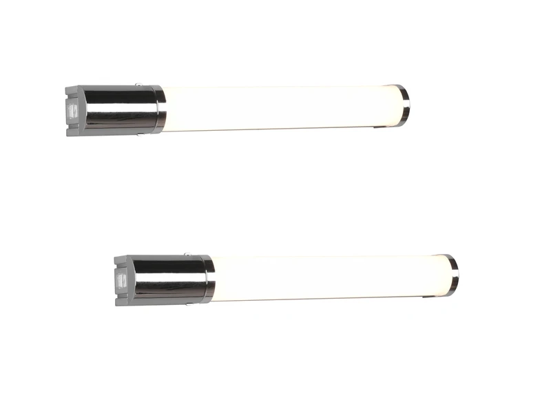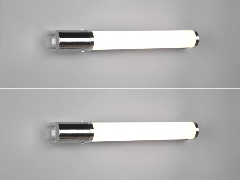 Jede Wandlampe ist mit einem fest verbauten LED Modul ausgestattet, welches mit einer Leistung von 8 Watt und 850 Lumen in Warmweiß für eine schöne Beleuchtung sorgt. Zusätzlich ist die Badezimmerlampe mit einem Ein / Aus Schalter ausgestattet.