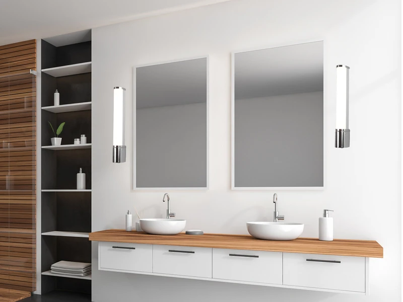 Auf der Suche nach einer geeigneten Badezimmerbeleuchtung kommt man auch an dieser praktischen, zeitlosen Bad Wandleuchte nicht vorbei. Diese minimalistische Wandleuchte im 2er Set vereint als praktische Badleuchte Design und Funktionalität. Das schlichte Erscheinungsbild in Kombination mit der integrierten Steckdose passt perfekt in alle Wohnbereiche – ob in der Küche, über einer Arbeitsfläche, neben dem Badezimmerspiegel oder im Eingangsbereich und Treppenaufgang.