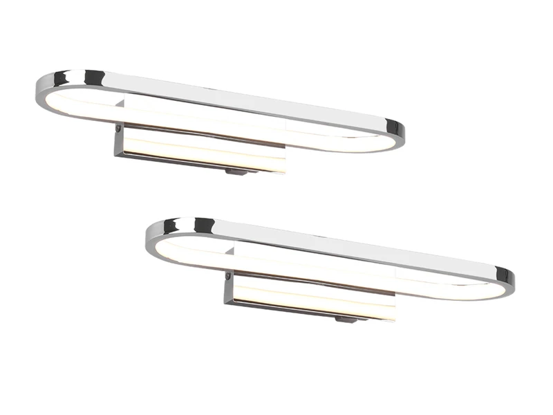 Der Chrom glänzende Metallkorpus verleiht der Badezimmer Lampe eine exklusive Optik. Mit einer Breite von 40 cm und einer Ausladung von 14,8 cm ist sie auch für kleinere Bäder gut geeignet und überzeugt durch ihr effektives, aber dennoch blendfreies Licht.
