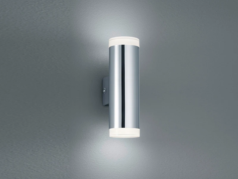 Der Silber Chrom Korpus verleiht der Badezimmer Lampe eine exklusive Optik. Mit einer Höhe von 16,6 cm und einer Ausladung von 8,3 cm ist sie auch für kleinere Bäder gut geeignet und überzeugt durch eine effektive und harmonische Up and Down Beleuchtung.
