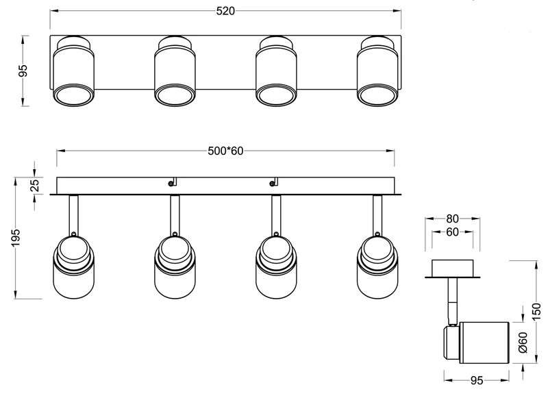 Die Spotleuchte hat eine zeitlose Optik und sorgt nicht zuletzt durch die flexible Ausrichtung der Spots für eine angenehme Ausleuchtung der gewünschten Bereiche. Das stimmige zeitlose Design in Schwarz matt, sorgt für ein modernes Erscheinungsbild und lässt sich harmonisch in vorhandene Einrichtungsstile integrieren. Der Strahler hat eine Breite von 52 cm, eine Höhe von 19,5 cm und eine Tiefe von 9,5 cm.