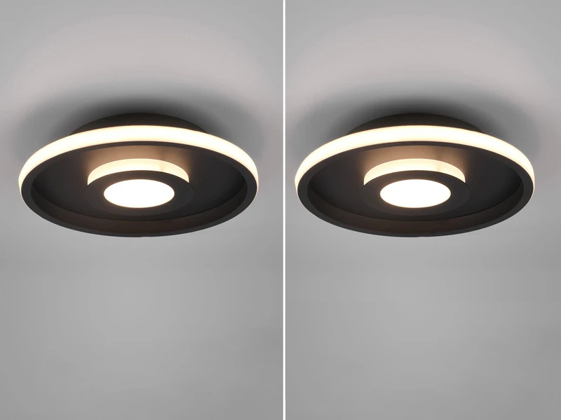 Dank Schutzart IP44 sind die Lampen gegen Spritzwasser geschützt und damit perfekt fürs Badezimmer geeignet. Die edle Optik in Schwarz matt und Weiß, unterstreicht den minimalistischen Einrichtungsstil und sorgt für ein helles, freundliches Ambiente. Dabei hat die Lampe einen Durchmesser von 30 cm sowie eine Höhe von nur 6,8 cm.
