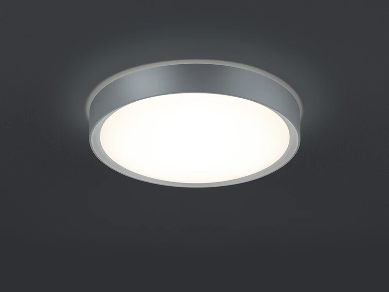 Dank Schutzart IP44 ist die Lampe gegen Spritzwasser geschützt und damit perfekt für alle Feuchträume, wie Badezimmer und Gäste WC geeignet. Die edle Optik in Titanfarbe Grau unterstreicht den minimalistischen Einrichtungsstil und sorgt für ein helles, freundliches Ambiente. Dabei hat die Lampe einen Durchmesser von 33 cm sowie eine Höhe von nur 9 cm.